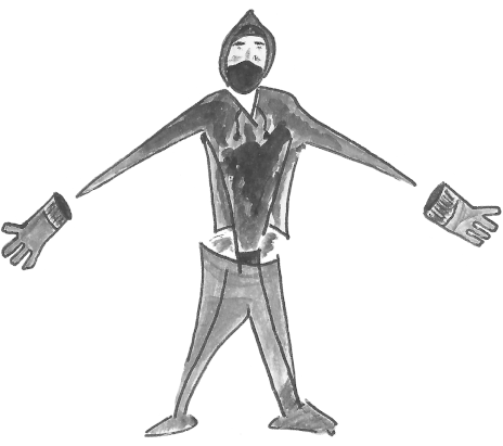 N.T.P. note: This zine doesn't discuss it, but the clean/dirty (Casey/Danny) roles should also be used during an action. For example, let's say you plan to use an incendiary device during an action. Casey only touches the incendiary device and any surfaces at the action site that need to be handled (e.g., a door handle, the cover of a fiber optic manhole). Danny touches anything that was brought to the action site and is therefore more likely to be contaminated with DNA: a backpack, the handles of the bolt cutter, the device packaging, etc. This division is just as important as when preparing for the action, and for the same reasons — if you contaminate the device with DNA when you place it, all the precautions you took when preparing for the action are irrelevant.